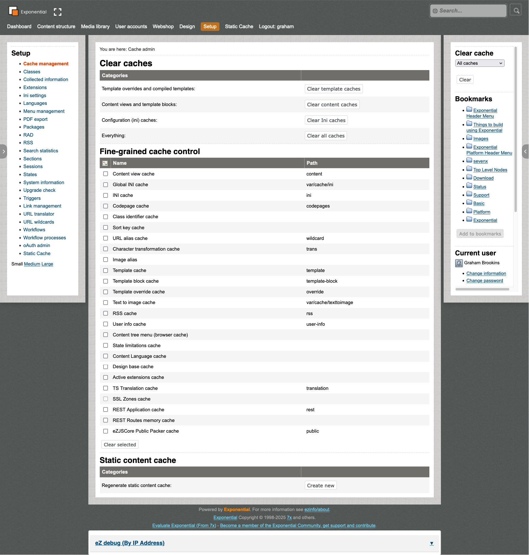 Exponential / About / About Exponential / Screenshots / Exponential Project - Admin Cache admin